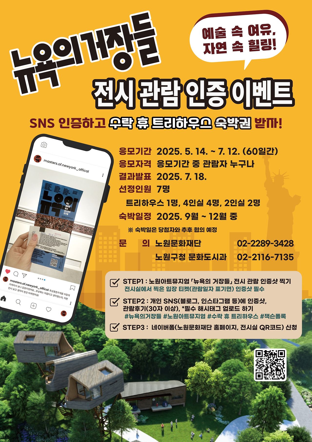 수락 휴 트리하우스 숙박권 받자! 「뉴욕의 거장들」 전시 관람 인증 이벤트