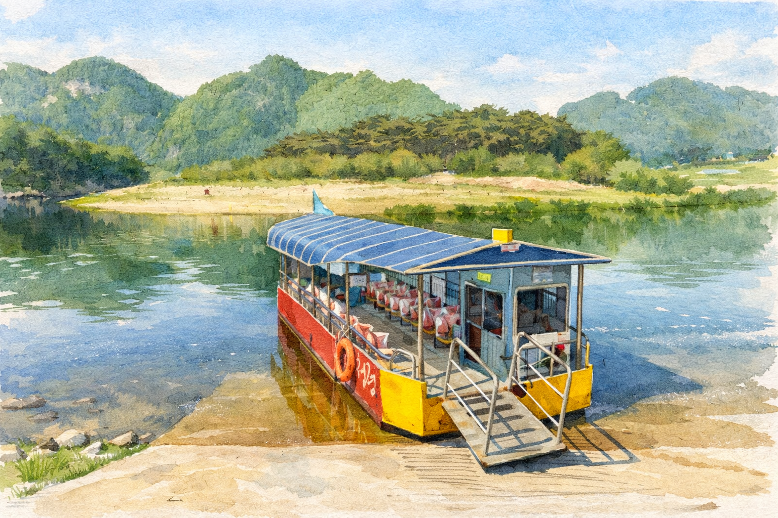 - 배는 일정 인원이 모이면 운항