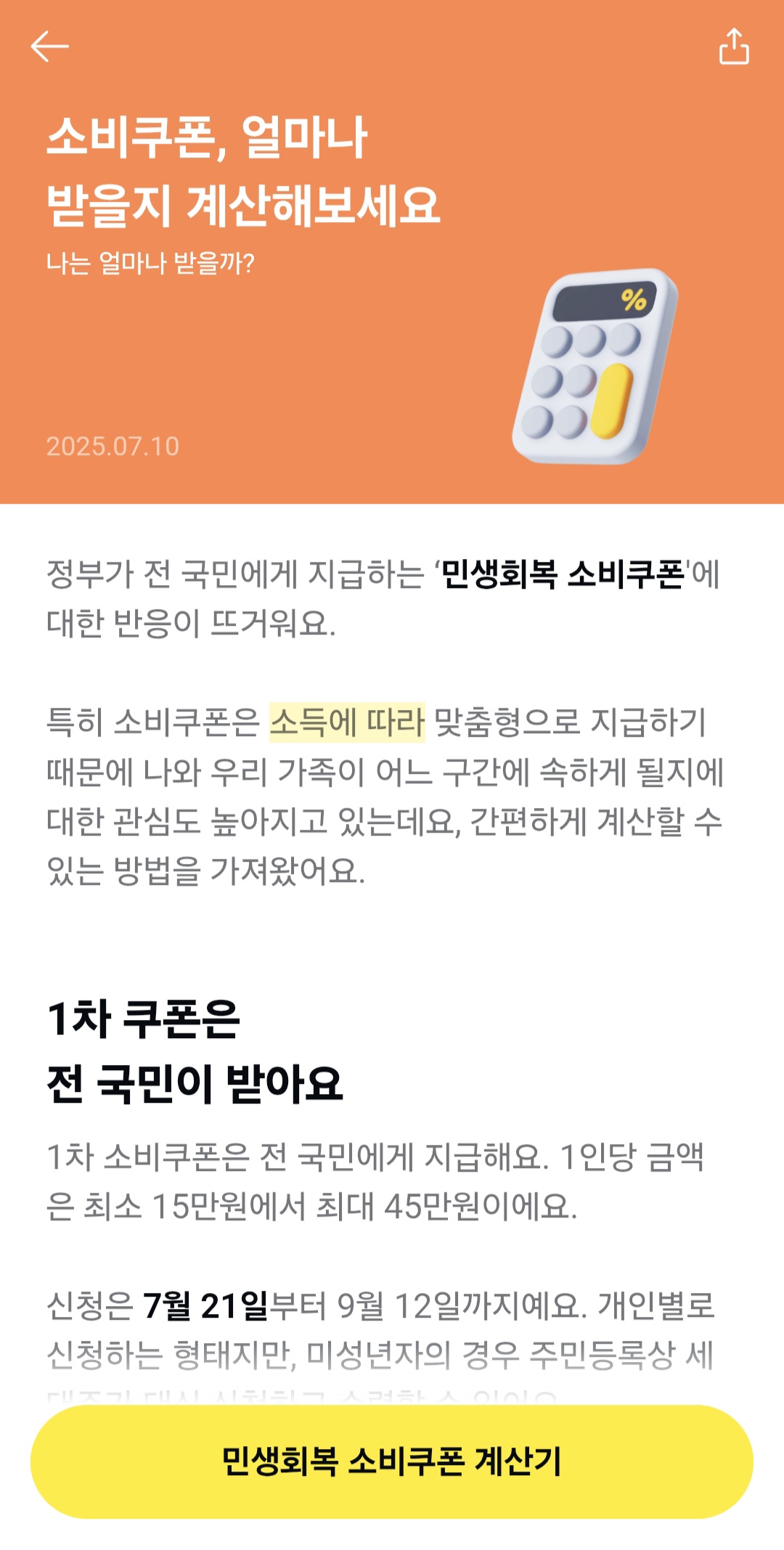 카카오페이 앱을 다운로드하고 민생회복 소비쿠폰 계산기를 통해 정확한 수령액을 미리 확인해보세요!